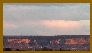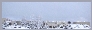 | Vignette view to north of La Plata Mountains in Colorado, visible between houses during winter months. |