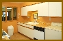 Galley/Laundry - Access to the galley/laundry on the lower level is via a door at the rear of the family/media room on the wall opposite the vestibule/game room doorway. A large enclosed pantry is located to the left of the entry door (utilizing the space under the interior staircase). An electric trash compactor (useful for reducing the volume of disposable tableware generated at parties and bar-b-ques, etc.) is located in the pantry and is included with the purchase. The galley flooring is of the same ceramic tile as used extensively throughout the residence. The white laminate covered cabinets with oak trim and laminate countertops, in an oak butcherblock pattern, allow for easy cleaning and the smooth countertops are more suited to the laundry dual use than, e.g., ceramic tile. An Amana range with oven and one-piece glass/ceramic cooktop is inset into cabinets on the left side of the galley. An Amana microwave is located above the range. An over/under refrigerator with top freezer door is located at the end of the cooking area cabinets. A two bay molded polymer sink with food disposer in located in the center of the row of cabinets on the right side of the galley. An undercounter dishwasher is below and to the right of the sink. Immediately adjacent, to the right, are newer Frigidare front-loading washer and electric dryer, installed flush with the counters and cabinets. The end wall adjacent to the washer and dryer has a built-in ironing board with mirrored door. The opposite far wall has an oak framed pass-through to the mudroom (with sliding glass patio door) which allows daylight in to the galley. All appliances in the galley/laundry are included with the purchase. The galley on the lower level of Casa Vista, in addition to the full gourmet kitchen on the upper level, allows for flexibility in the use of the residence. It allows the lower level to potentially be a semi-independent residence unit and the proximity of the galley to the family/media room and adjacent outdoor entertainment areas provides a full service food storage and preparation area conveniently located nearby. |