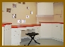 | Workshop - Desk height work surface. Opposite wall (out of picture) also has full upper and lower cabinets with countertops. | |